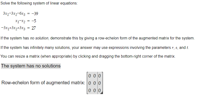 This relation is not one-to-one. We have seen how to write a system of equations with an augmented matrix and then how to use row operations and back-substitution to obtain row-echelon formNow we will take row-echelon form a step farther to solve a 3 by 3 system of linear equations. We review their content and use your feedback to keep the quality high.